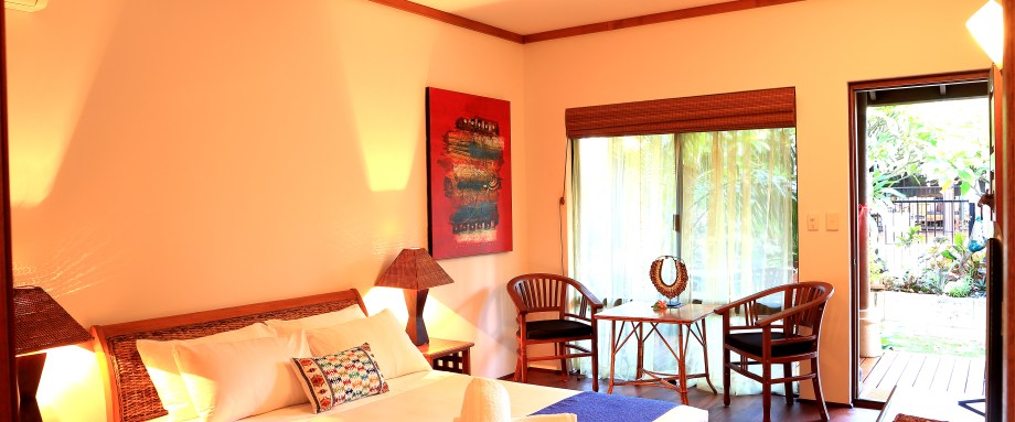A stand alone bali style villa with two lovely rooms sharing bathroom facilities. Each with their own television, air conditioning, kitchenette and front deck overlooking the lush tropical style leisure facilities which are shared with the accommodation hosts, Ray and Bob.
